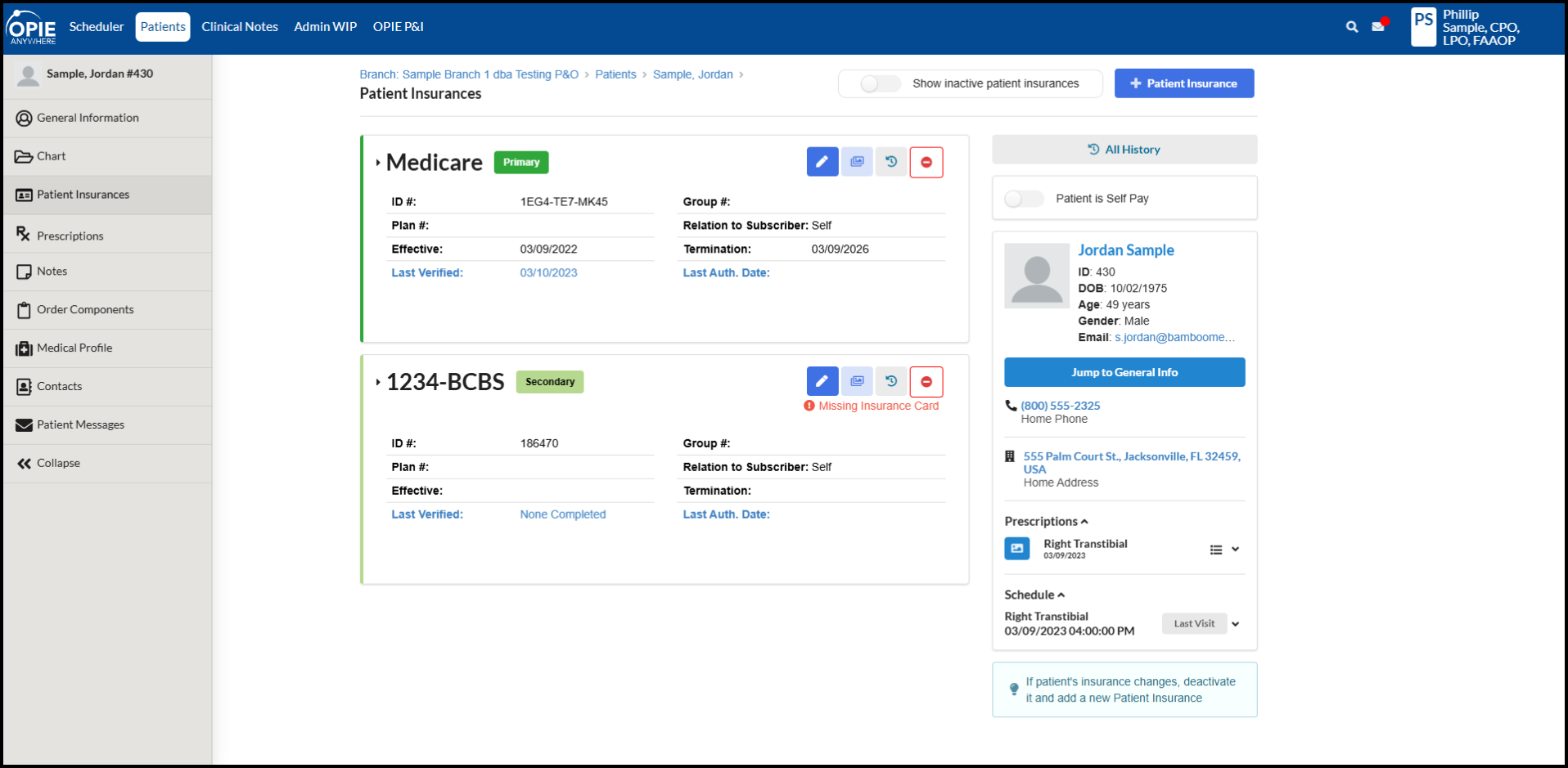 The intuitive Patient Insurance Management interface within OPIE Anywhere allows you to create, view, and manage insurance details and images assigned to the patient records with ease. This offers another seamless communication tool for your interdisciplinary teams.