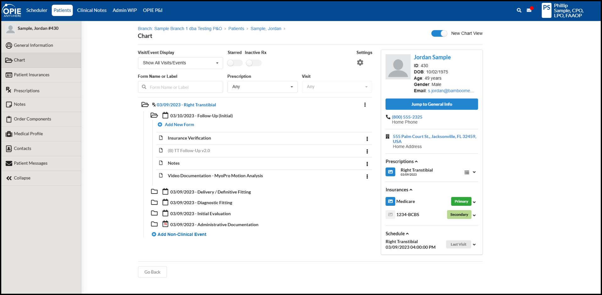 A comprehensive suite of features and tools allows you to manage every aspect of the patient care journey, from the most granular detail to the highest-level business reporting. The updated side panel provides quick access to critical links like RX Summary, Insurances, Scheduling, and more, streamlining navigation and giving clinicians the information they need at a glance. Advanced features like code intelligence, compliant clinical note workflows, and integrated product and fabrication management ensure consistency and accuracy across your practice, from a single-provider model to the largest enterprise organization.