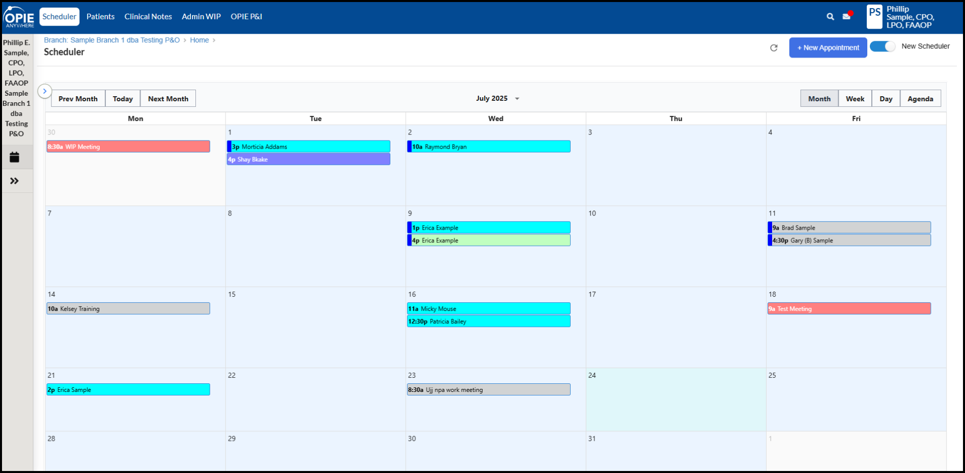 OPIE Anywhere’s Scheduler interface allows you to create, edit, and manage patient and non-patient visits in the office or on the go. Since the OPIE Software ecosystem provides end-to-end patient care management capability, the functionality goes far beyond just the appointments. Schedulers can manage device types, diagnosis codes, and even manage missed and cancelled appointments through advanced reporting. The new Agenda View button offers a streamlined, day-at-a-glance layout, helping clinicians and staff quickly review key appointment details and stay better prepared.